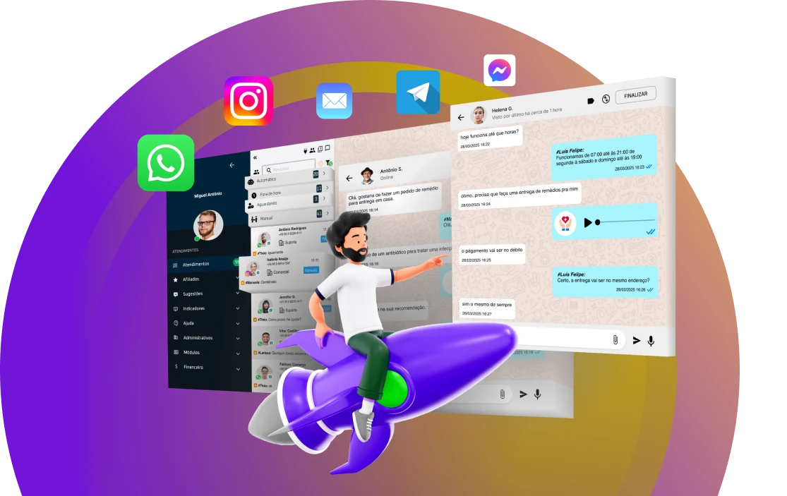 Em uma única tela, você responde às mensagens que recebe dos seus clientes e oferece a eles toda a comodidade de se comunicarem de onde, como e quando quiserem.